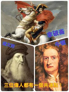【共通點無阻他們的成就】究竟拿破崙、達文西及牛頓有何共通點,而這個共通點,又有無影響他們的成就呢?