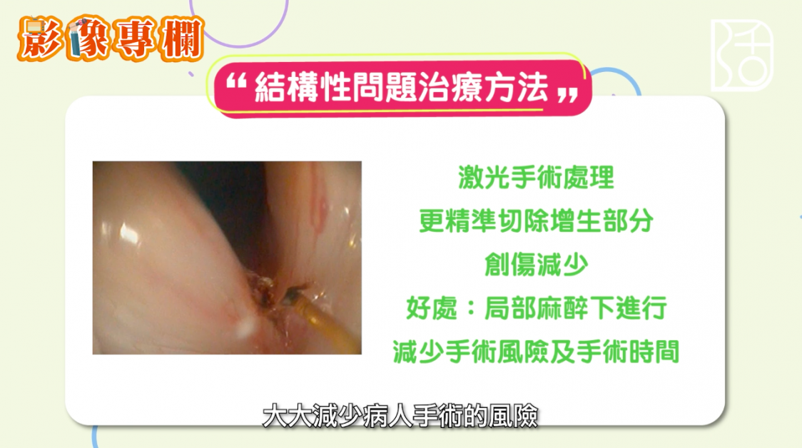 鄧志豪醫生指出,一般結構性的聲帶生繭都會即時建議以手術移除增生部分,現今技術可以用激光處理,能夠更精準切除,亦可把手術帶來的創傷減少。好處是在局部麻醉下情況進行,較傳統需要全身麻醉能減少手術時間及患者的風險。整個過程可於診所內處理。