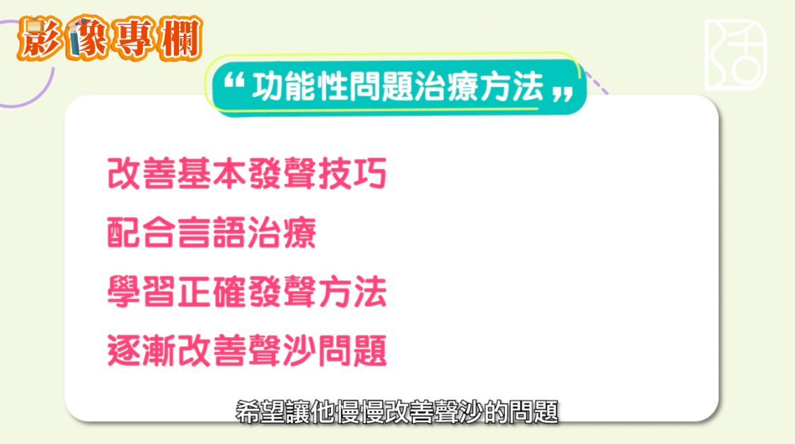 這些功能性引致的聲沙,則無法以手術處理及改善。鄧醫生稱,需從基本發聲技巧著手,需要配合言語治療,讓病人學習基本發聲方法,以期慢慢改善聲沙問題。